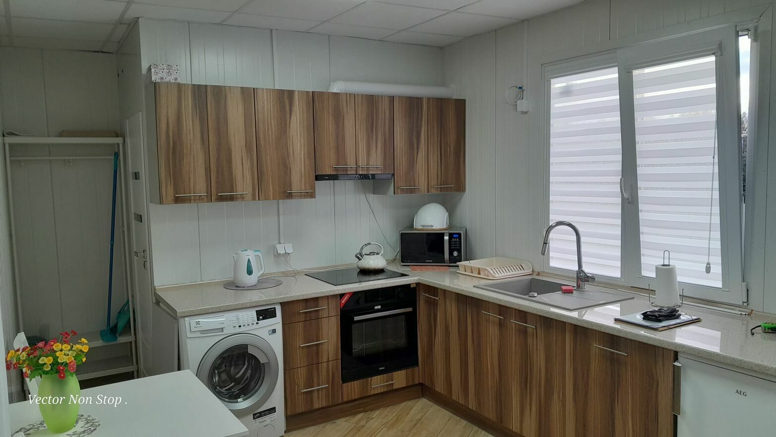 sprzęt AGD, zabudowana kuchenka z piekarnikiem, mikrofala, zmywarka,